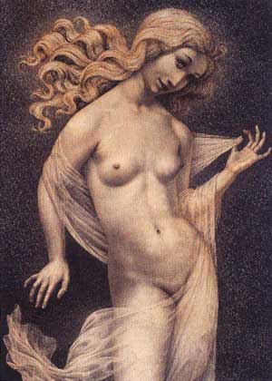 The other dominant theme to be announced in the early Hague years was the erotic female nude. Even before he met Diana, Johfra was producing drawings of women that betrayed (despite their classical poses and delicate rendering) a more definite eroticism. Such is the case with Sweet Seventeen (1946), produced shortly before he met Diana (in fact, the drawing is dated 24.03.1946 - one week before their first encounter).