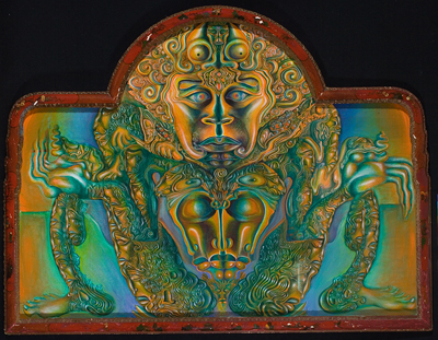 I was born in 1967 in Philadelphia Pennsylvania. I am self-taught. My knowledge of painting craft comes mostly from the books of Cennini and Ralph Mayer. The visionary side of my work comes from the strange lands and mind-bending dimensions I have experienced, to a large extent through entheogens. Part of my goal in painting is to synthesize some of my longest standing interests geometry, mythology, architecture and various optical obsessions into unique visual matrixes, or “keys”. Just what they will unlock is in the eye of the beholder.