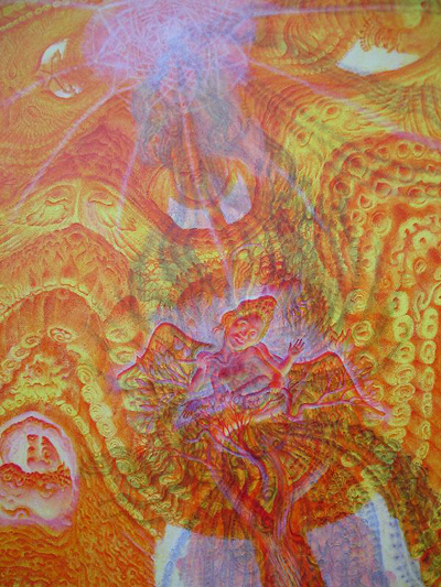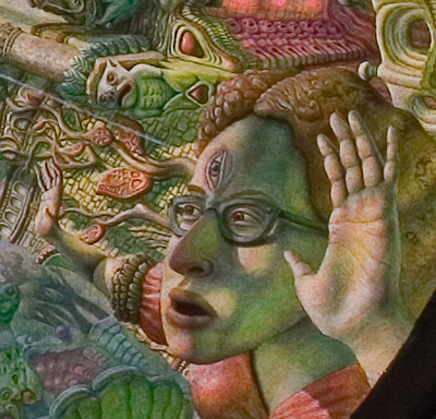 Cocooned in inner space, thousands of eyes opened and fluttered their lids. Wink: their gazes synchronized and traced geometric figures. They sent cryptic signals through an archly humorous dance of expressions. I had communed with them before: ancestral tricksters, librarians of the Akashic records... They appeared as the composite eyes of every known species of animal. They had witnessed every event, from the dawn of creation. Nevertheless, they often affected dramatic surprise, and all sorts of amusing theatrics.